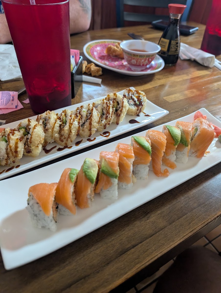 We are from the Springfield area (the birthplace of cashew chicken) and the cashew sauce here is spot on! Had the Roaring River roll and it was full of filling and not mostly rice. The sauce was not over the top and you could actually taste the crab and shrimp! Definitely recommend if you're craving sushi!