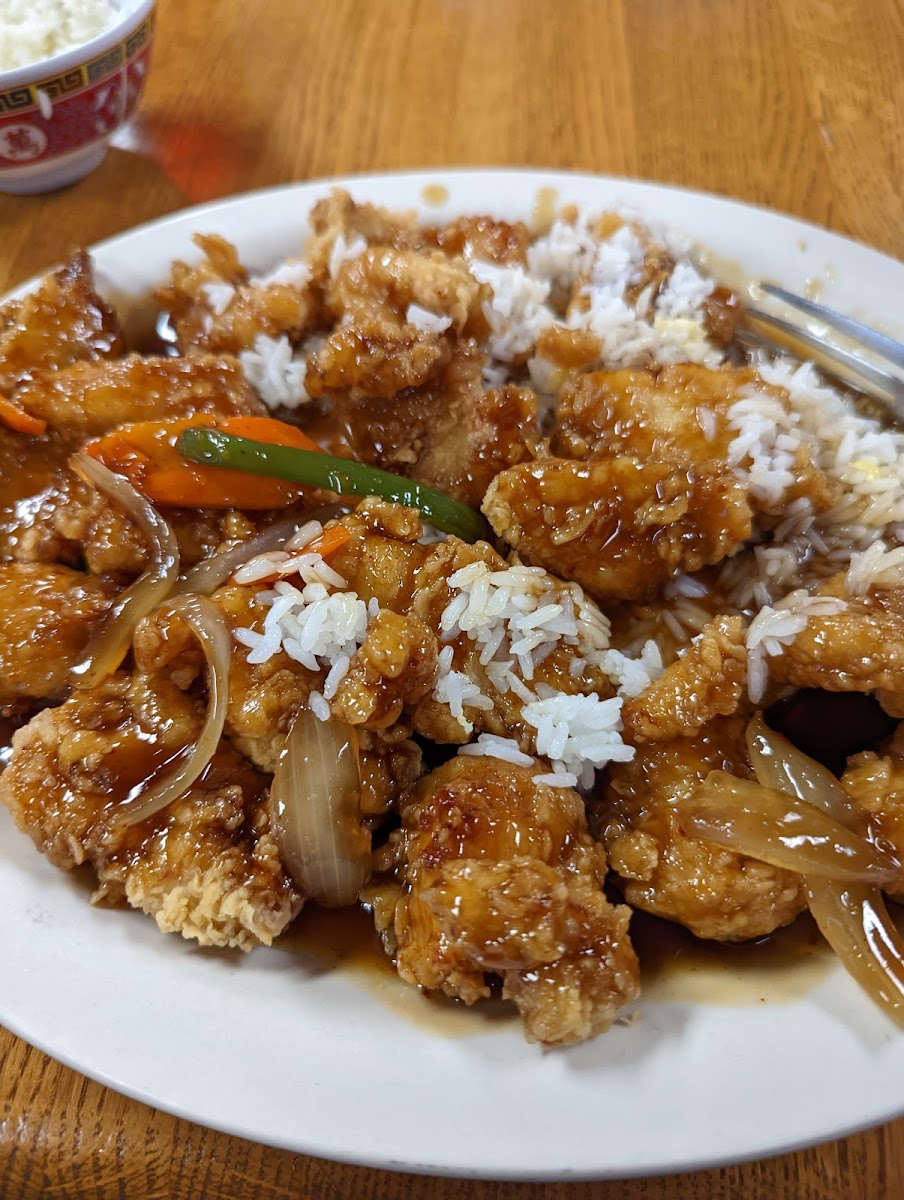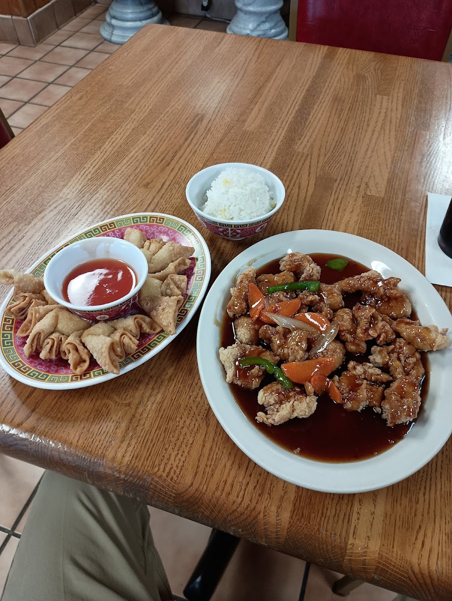 Very interesting decor for a Chinese place but it made it a little quirky. The crab Rangoon was incredible, maybe even some of the best I’ve had. I ordered the general chicken and it was fantastic, not spicy with the mild selection. Our bill was only $60 with 6 people!! Such a steal, would love to come back.